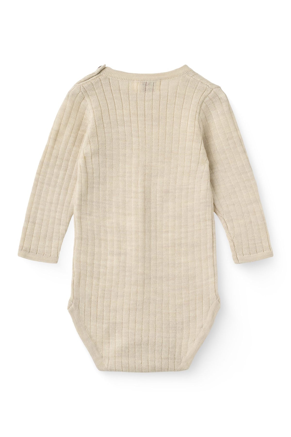 LANGÆRMET RIB BODYSTOCKING I MERINOULD - PALE CREAM MELANGE
