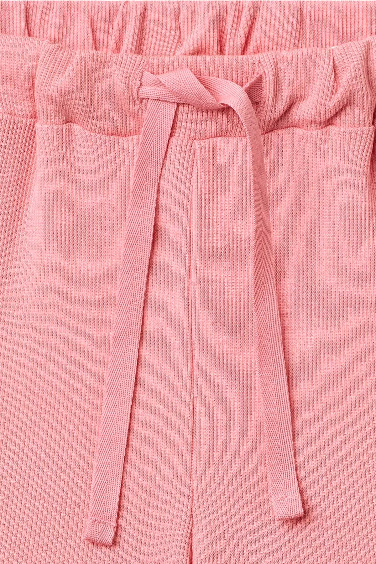 De ribstrikkede shorts har elastik i taljen.
