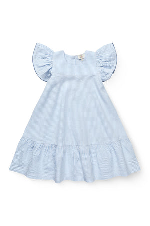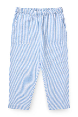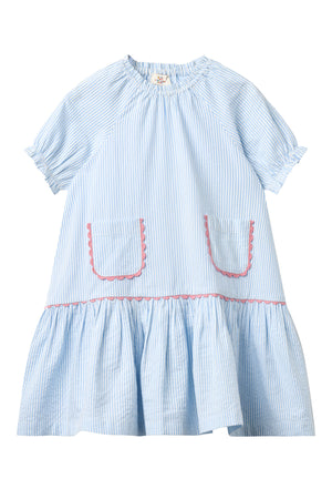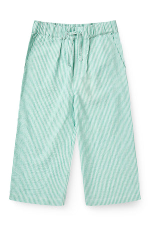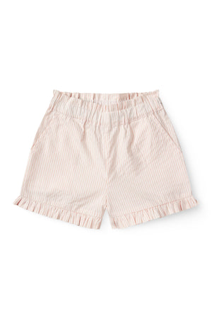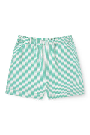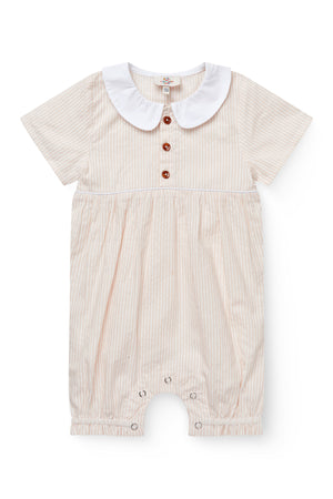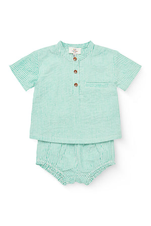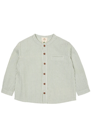 Denne stribet skjorte har en krave og knapper fortil.